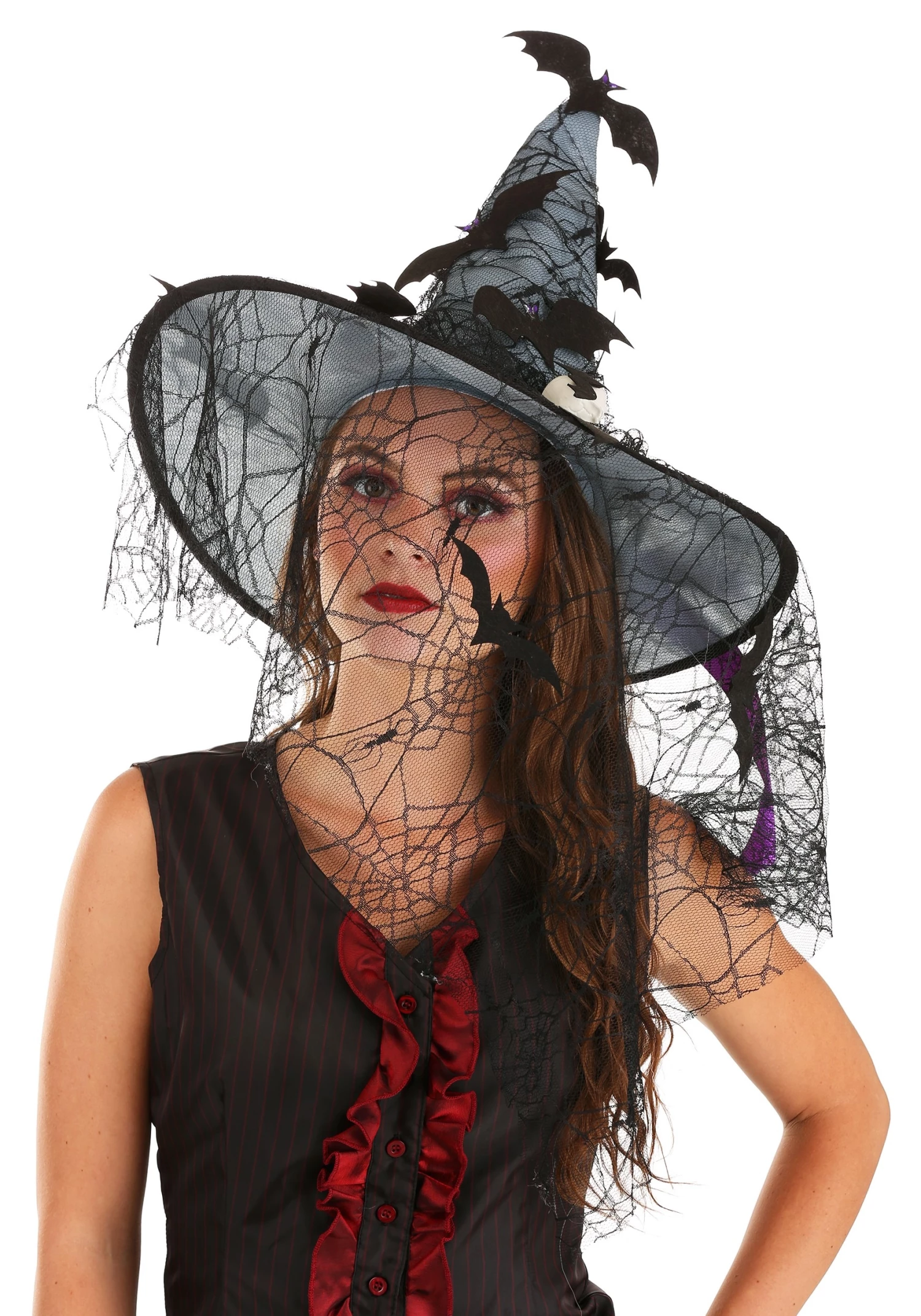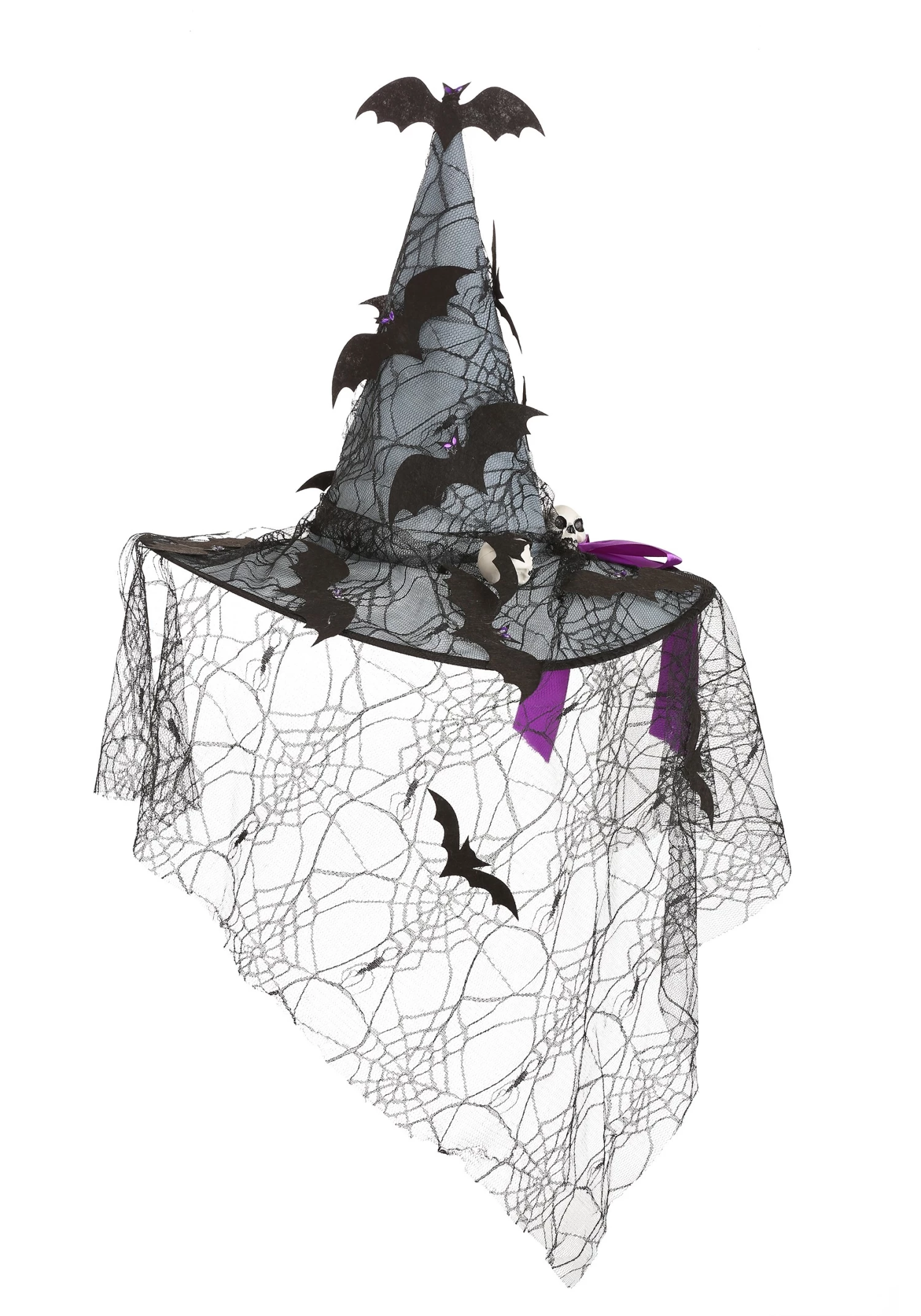 - Hat is covered w/ spiderweb lace & felt bats