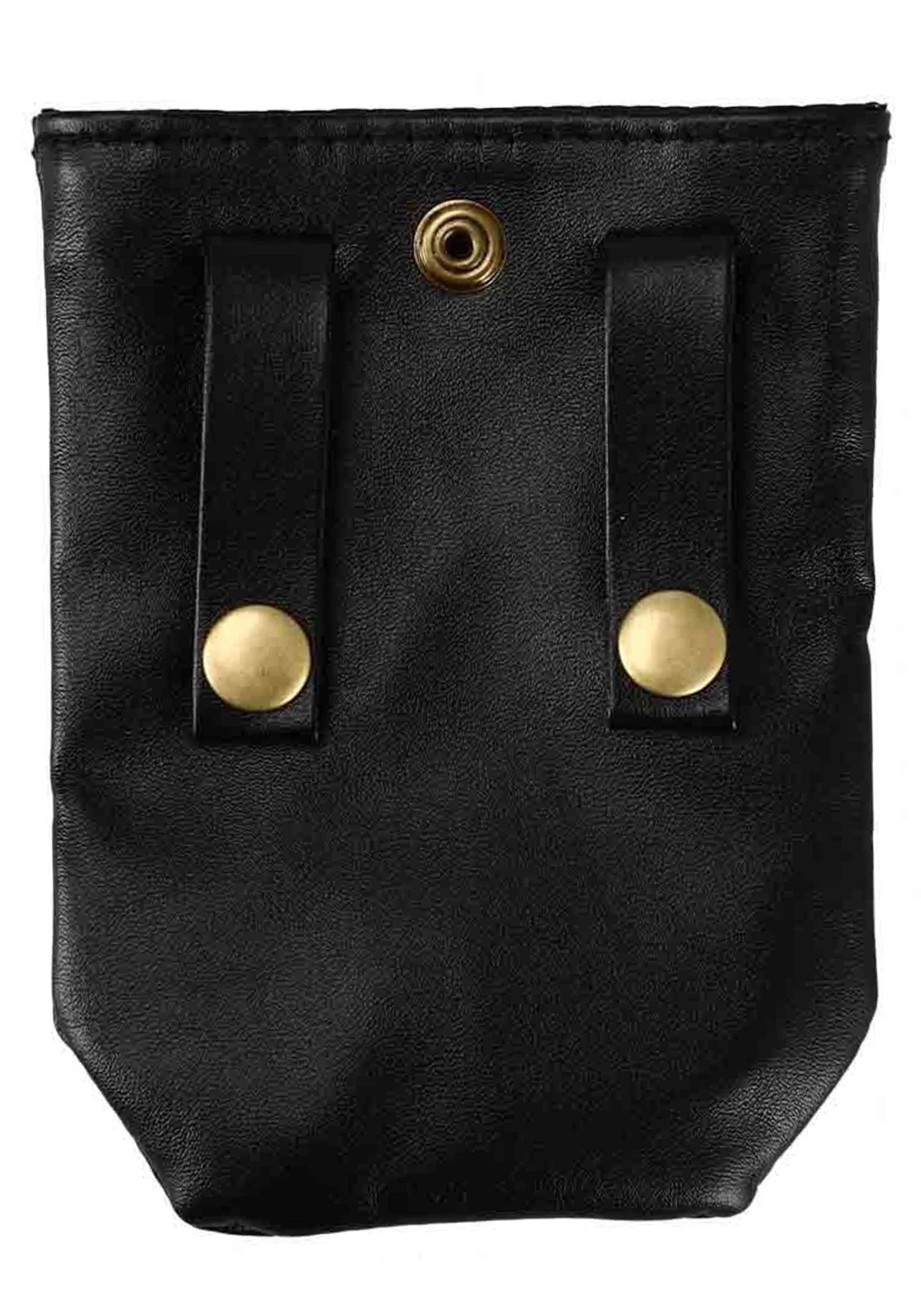 - Faux leather pouch measures 4″W x 5″H, closes w/ metal snap