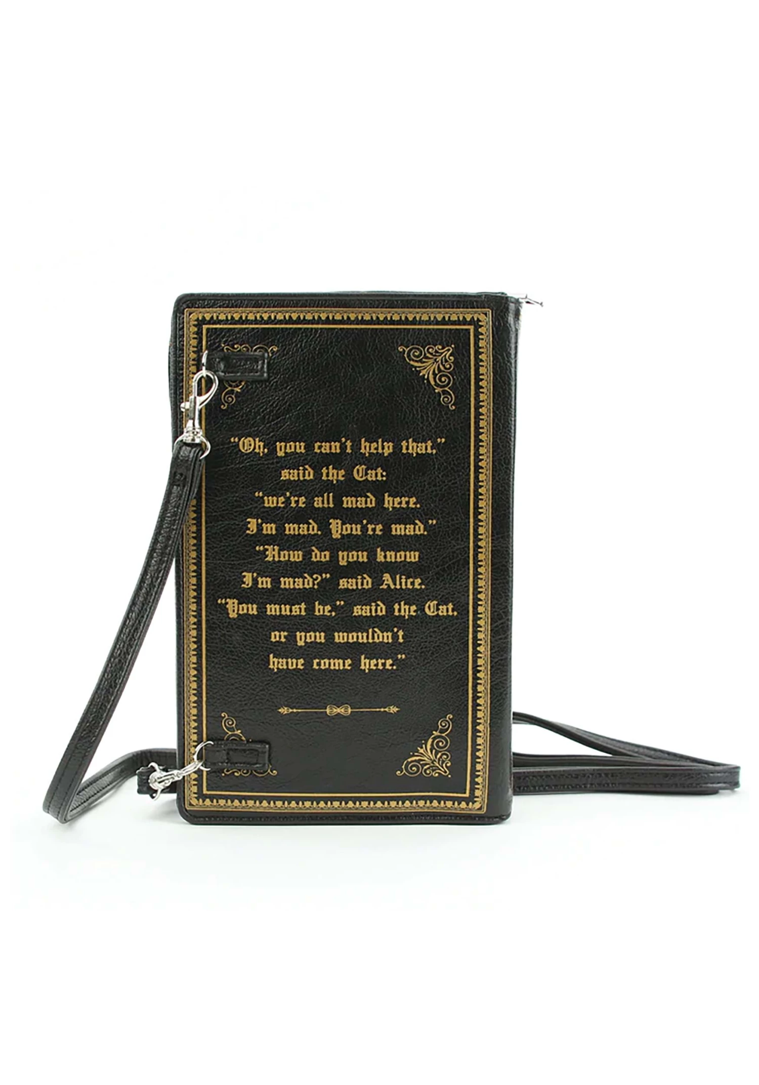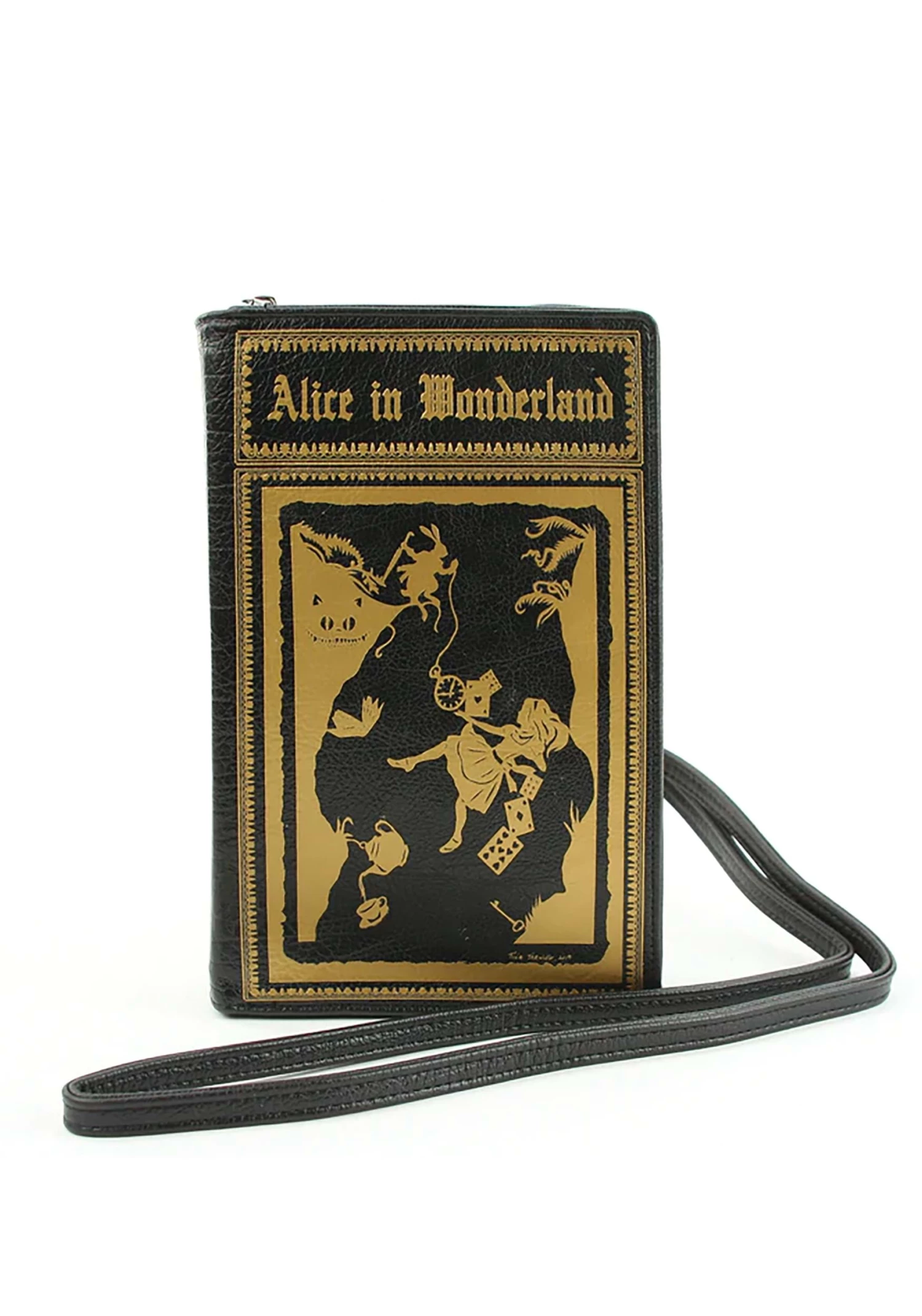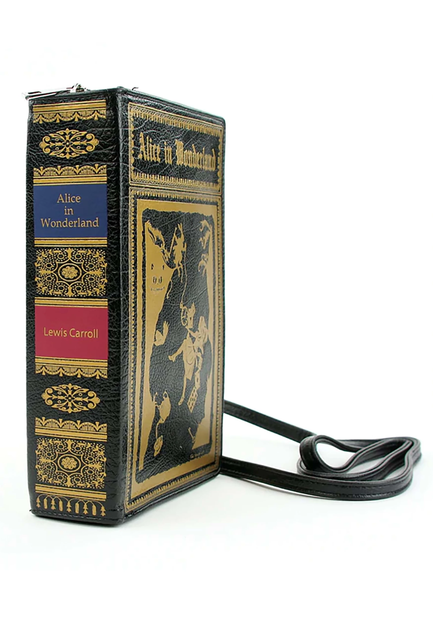 - Printed graphics on outer surface look like the cover of an early edition of Lewis Carroll’s classic novel Alice in Wonderland