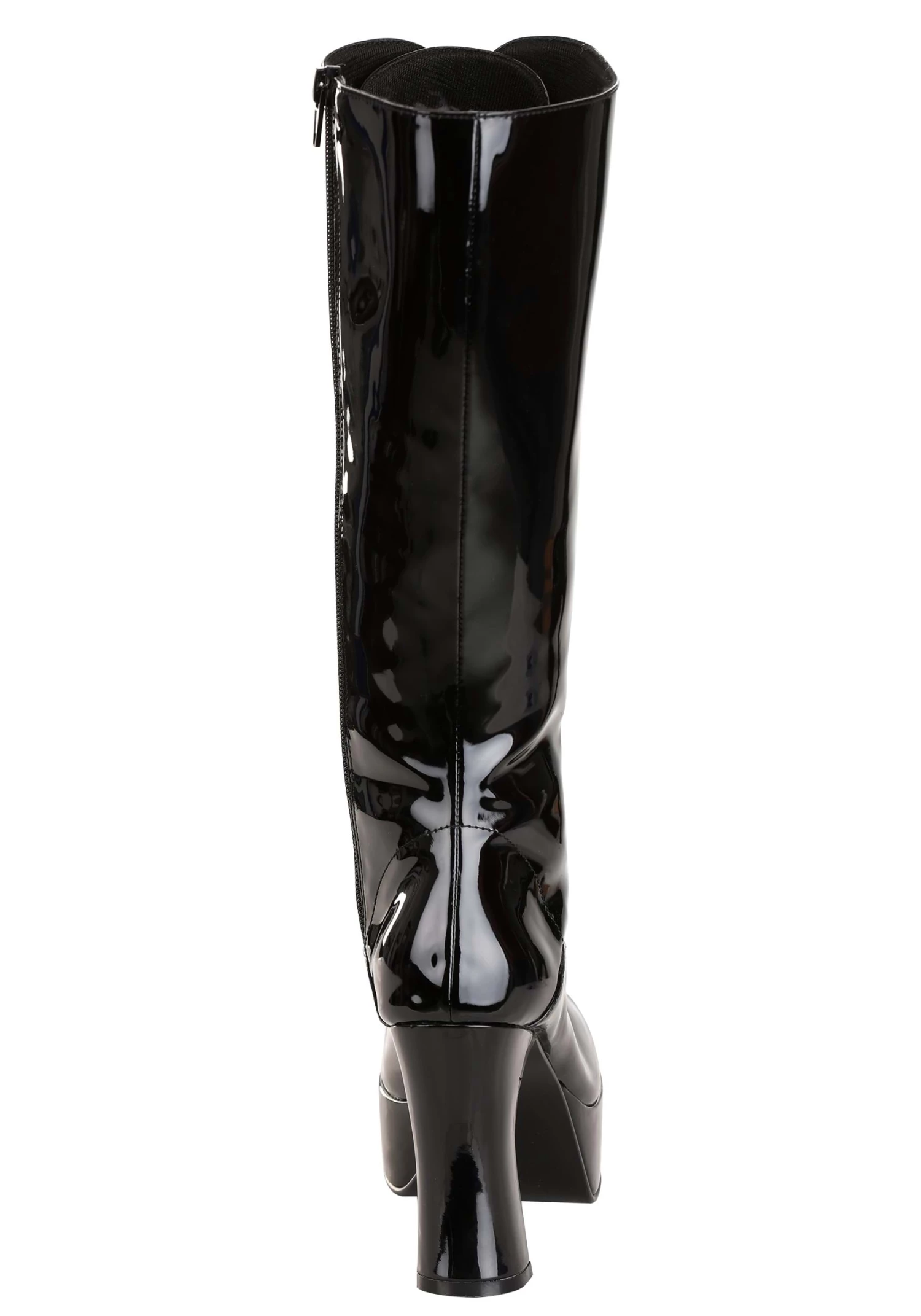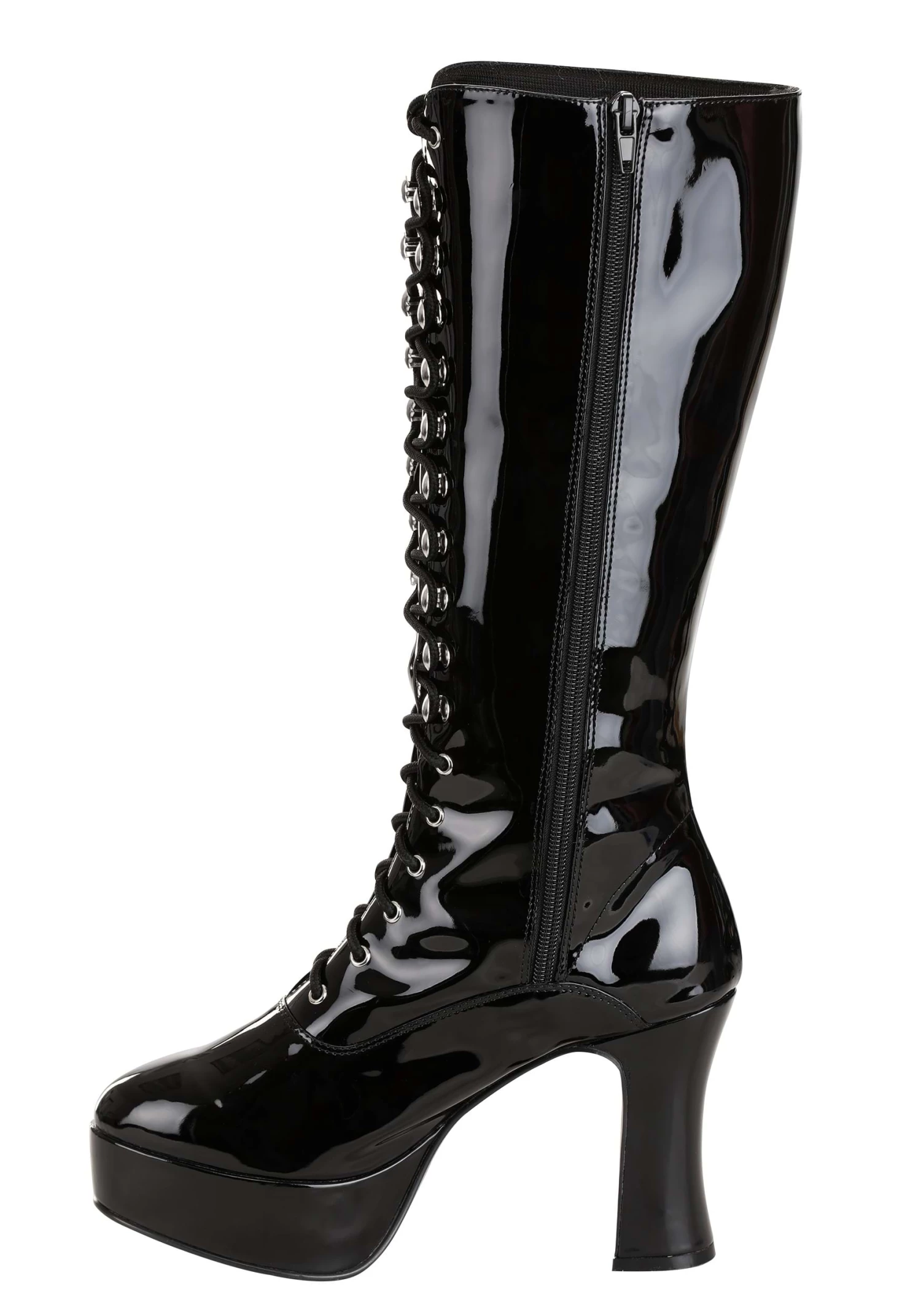 These are Women’s Sexy Black Faux Leather Knee High Boots.