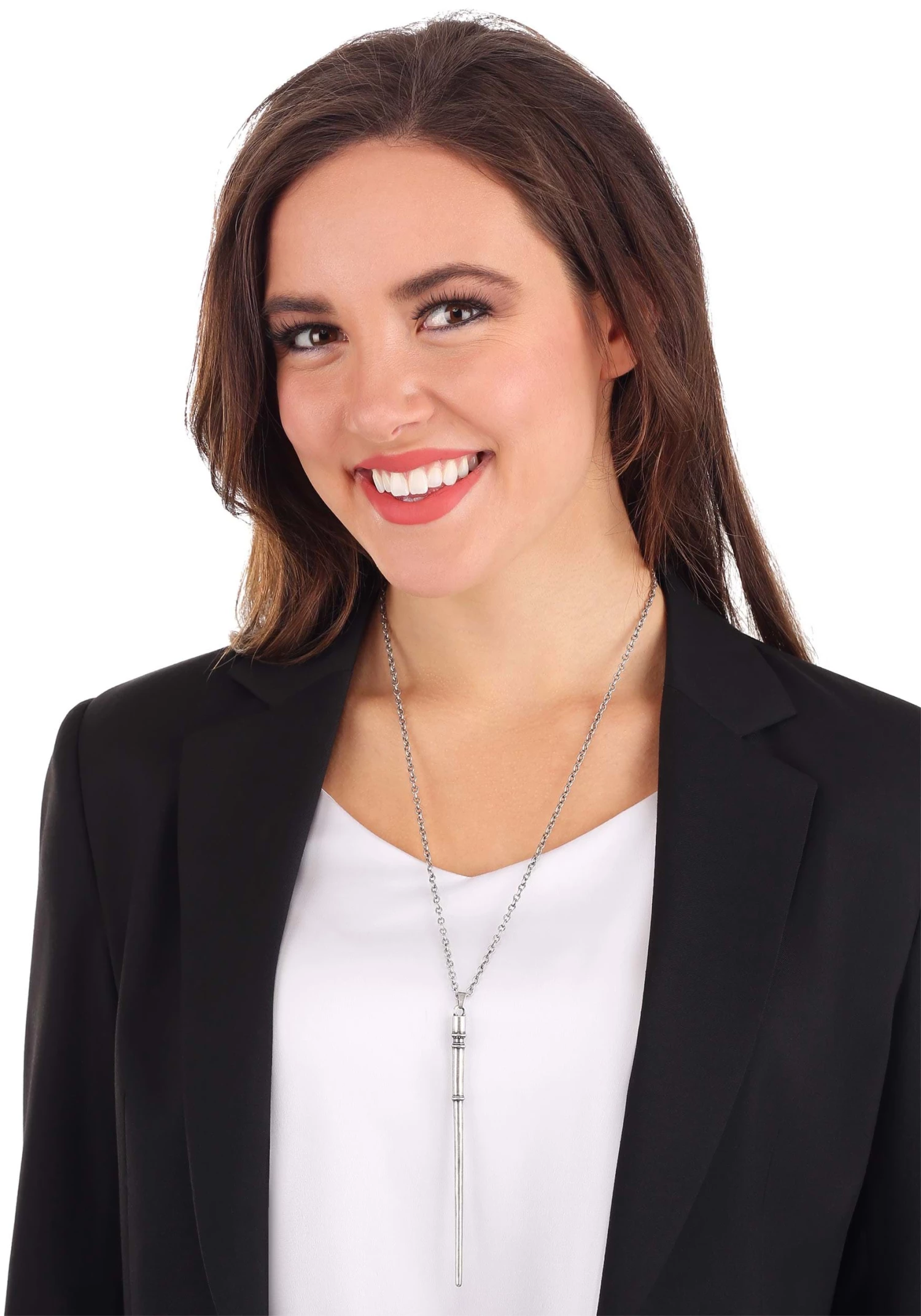 - Silver toned metal wand necklace