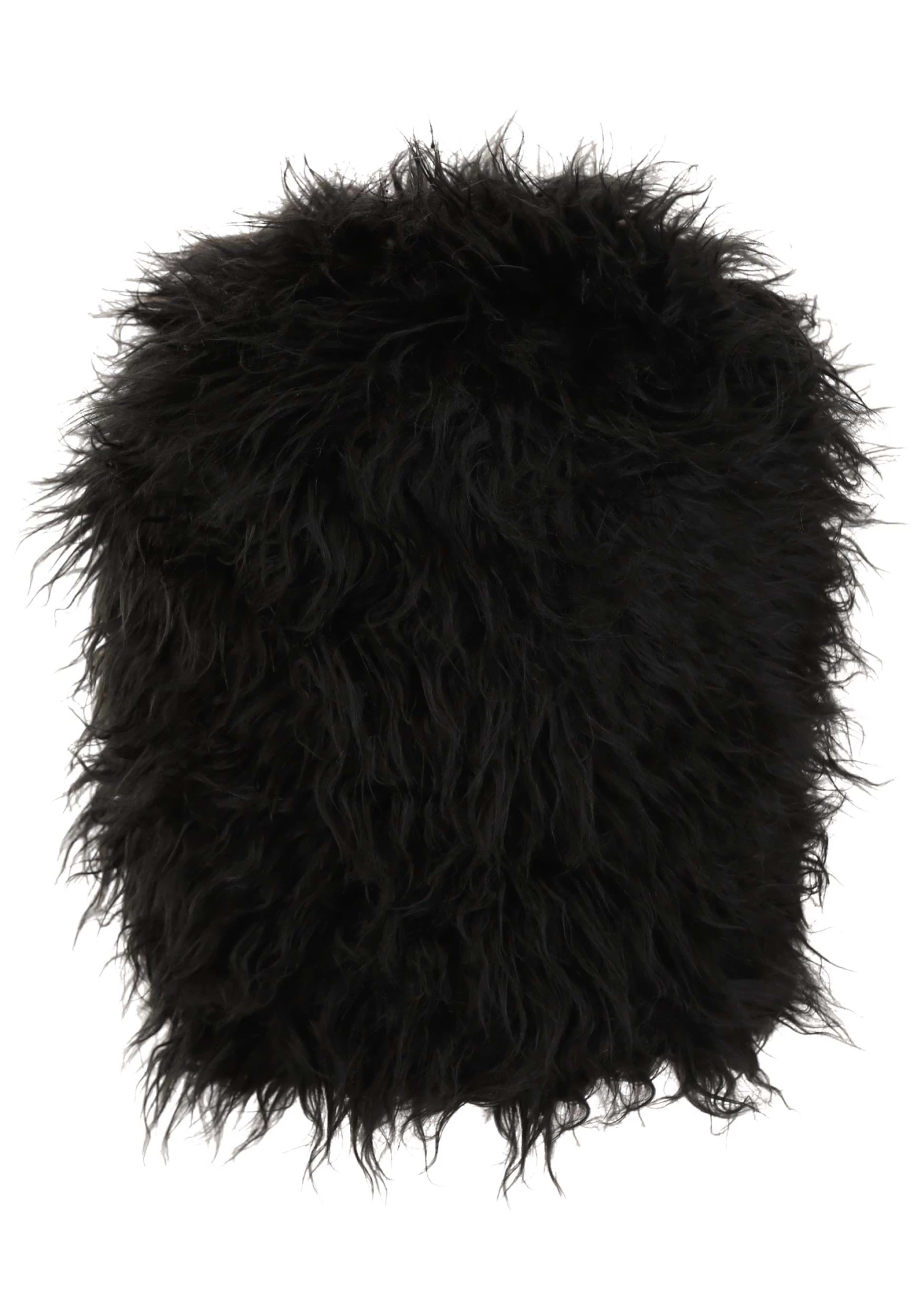 - Hat has velour forehead panel, faux fur “hair” on top, back, & sides