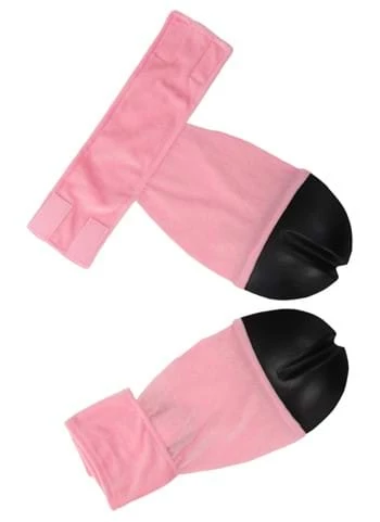 - Soft pink velboa w/ elastic straps to secure under your feet