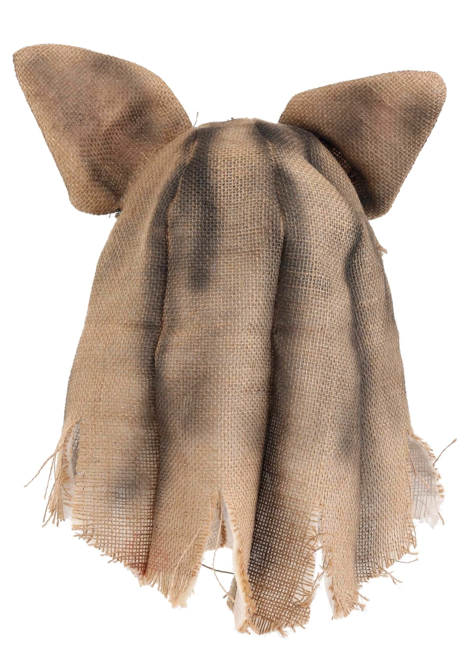 - Molded plastic mask is covered w/ burlap hood