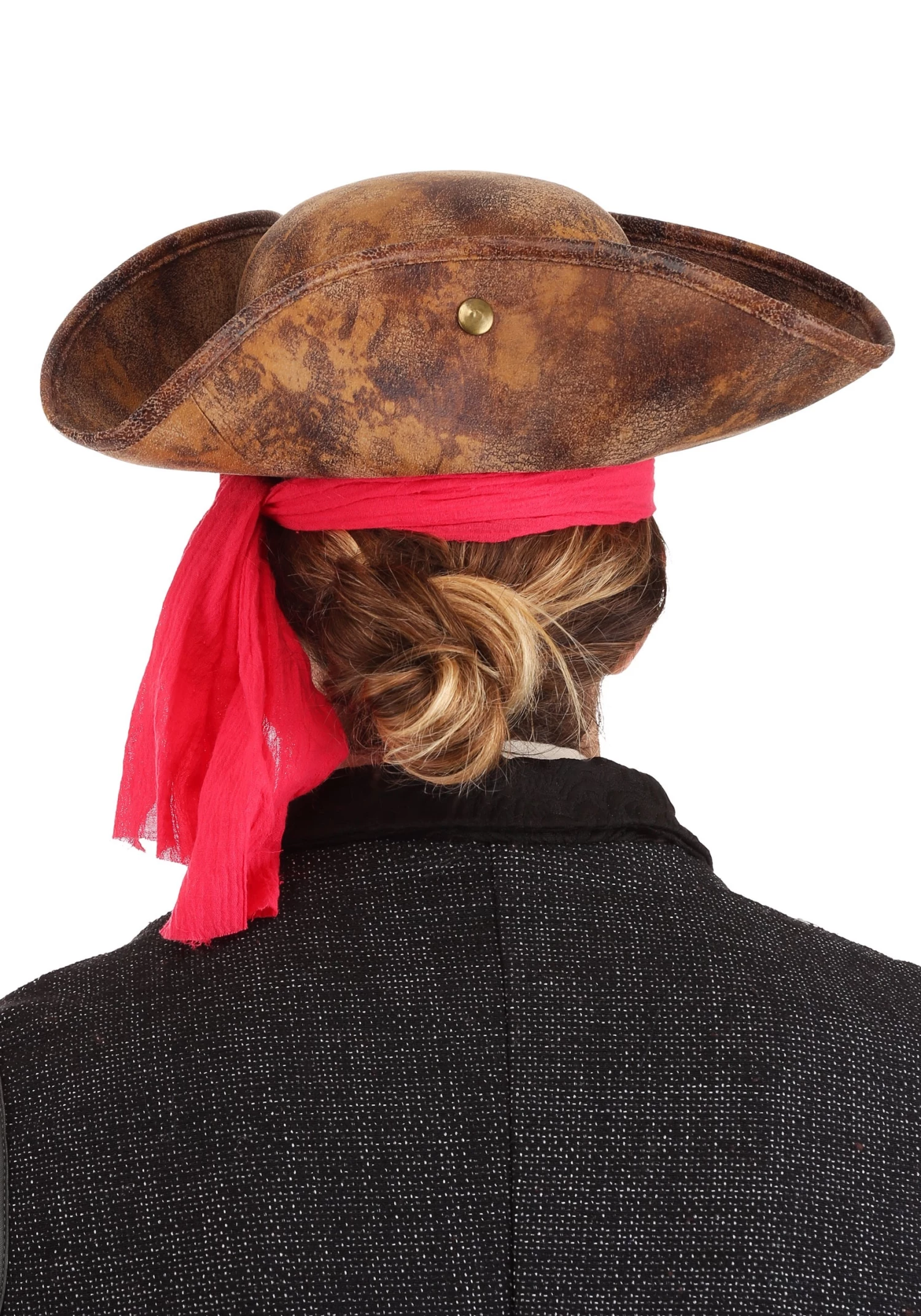 Ahoy there, matey! Let us have a good look at ye! Ye seem to have to look of a captain. Do ye plan on settin’ sail on the high seas as a scurvy pirate captain? Well, then, ye best be outfitted with a fine hat on your head to finish off your outfit! No self-respecting buccaneer will obey yer commands unless you’re wearing a hat fit for a captain. It be the law of the sea. But don’t you fret… we have this pirate hat and headscarf combination to help get you ready for all sorts of skullduggery! It’s an accessory set that’s perfectly designed for any new pirate just getting their sea-legs.