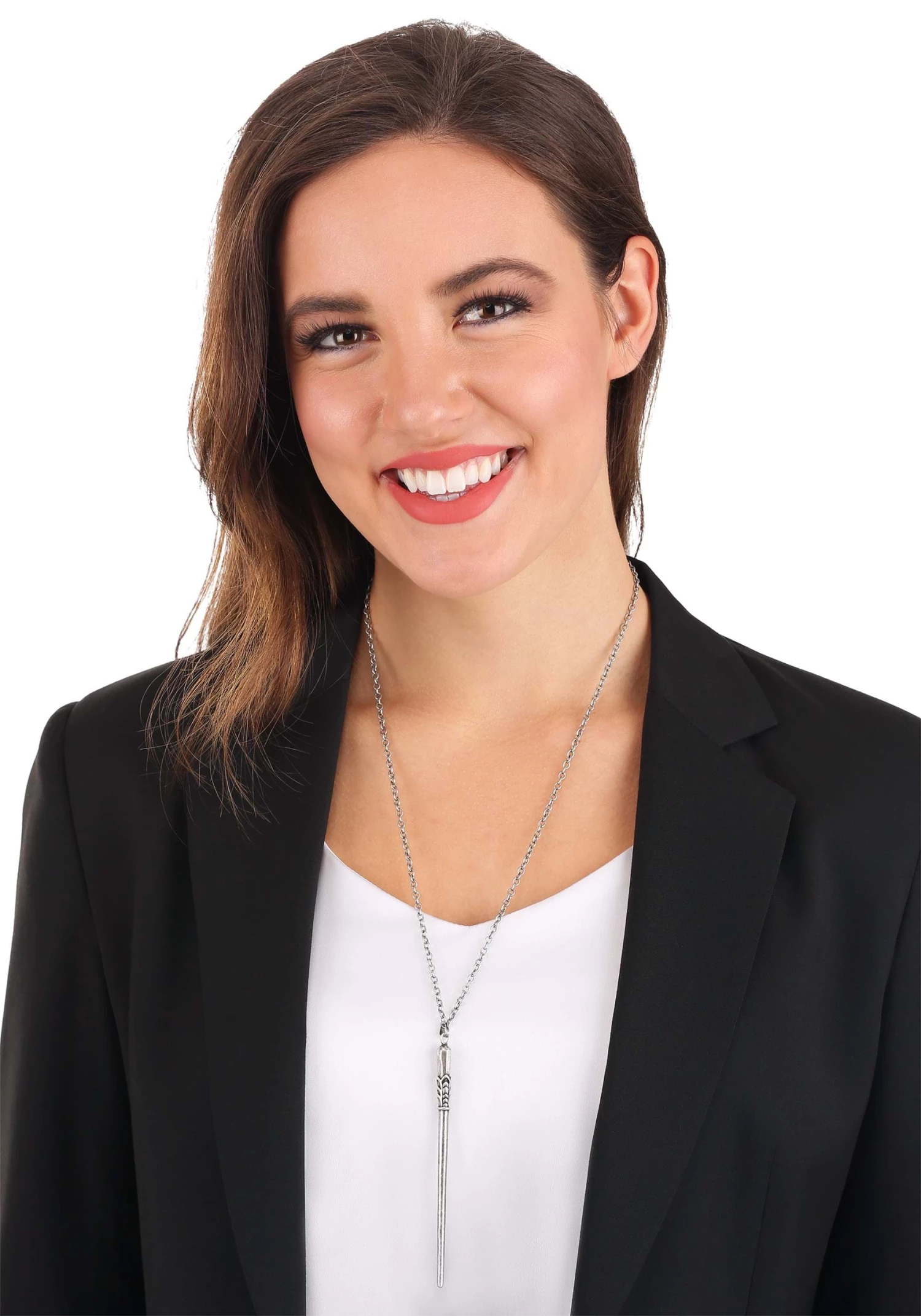 - Silver toned metal wand necklace