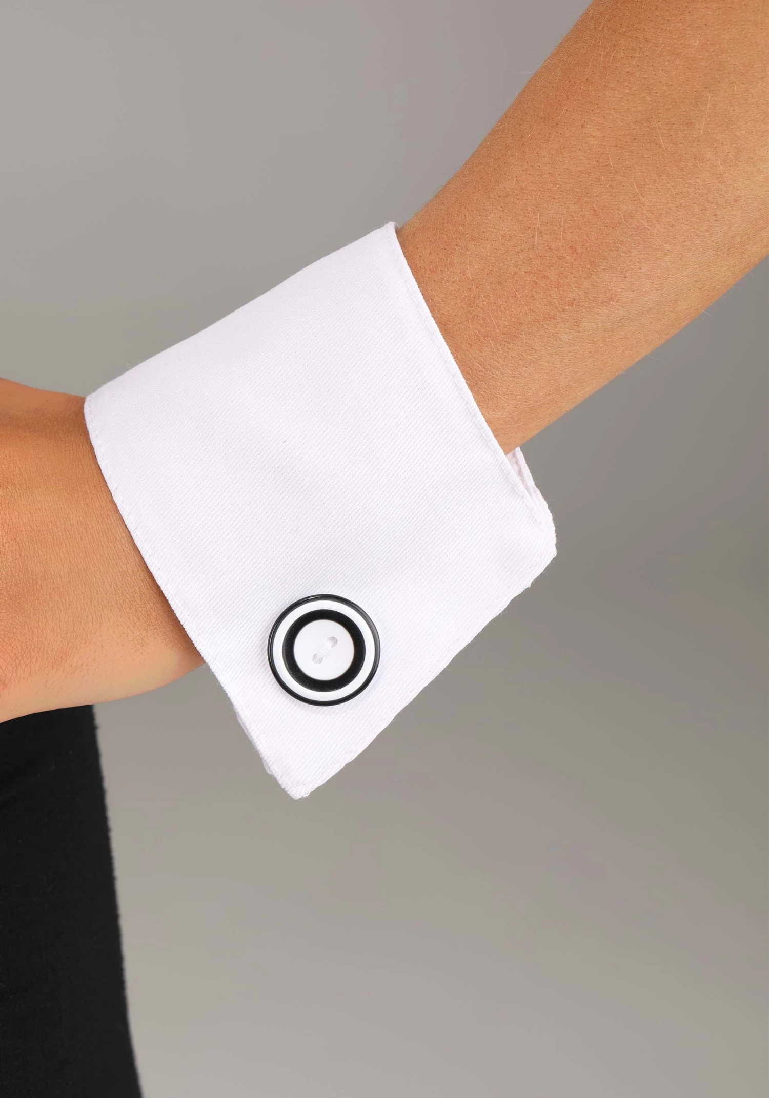 - White Hook and Loop fastener wrist cuffs with black and white button