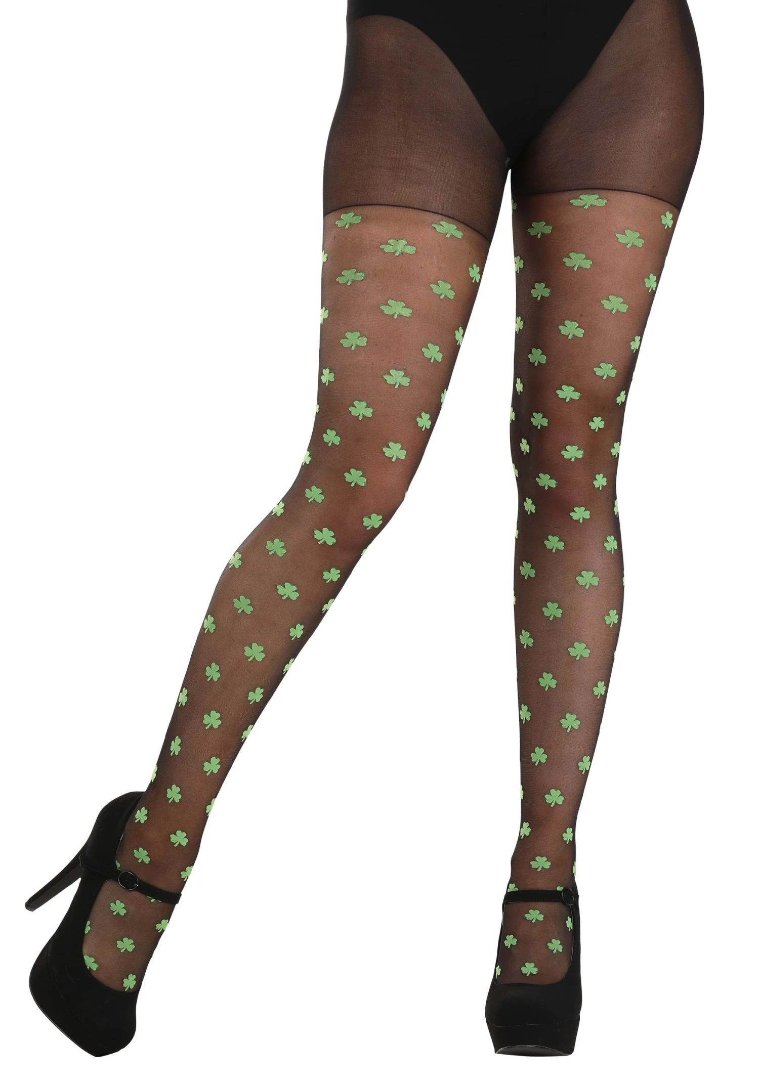 - Knitted-in opaque shamrocks on sheer background