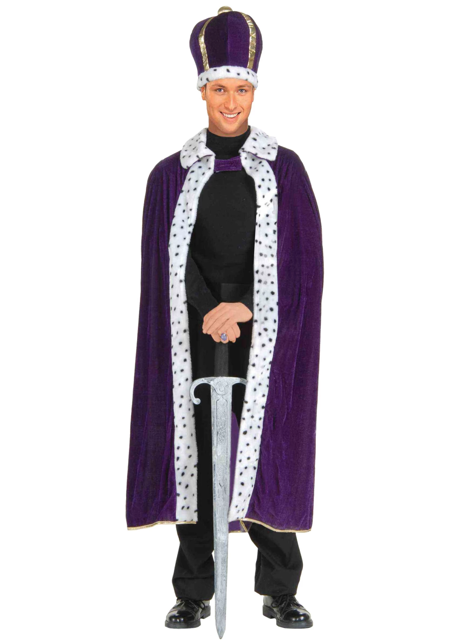 No! Never give up on your dream of becoming a king! With this purple king robe and crown set, you’ll look enough like a real king that you might be able to convince your friends and family that you truly are a regent! The cape is a soft, purple cape that has white leopard print accents. The collar also has matching white and black faux animal fur accents. The hat is a matching purple and it even has gold accents along the sides for a look that will have you feeling like the one true king!