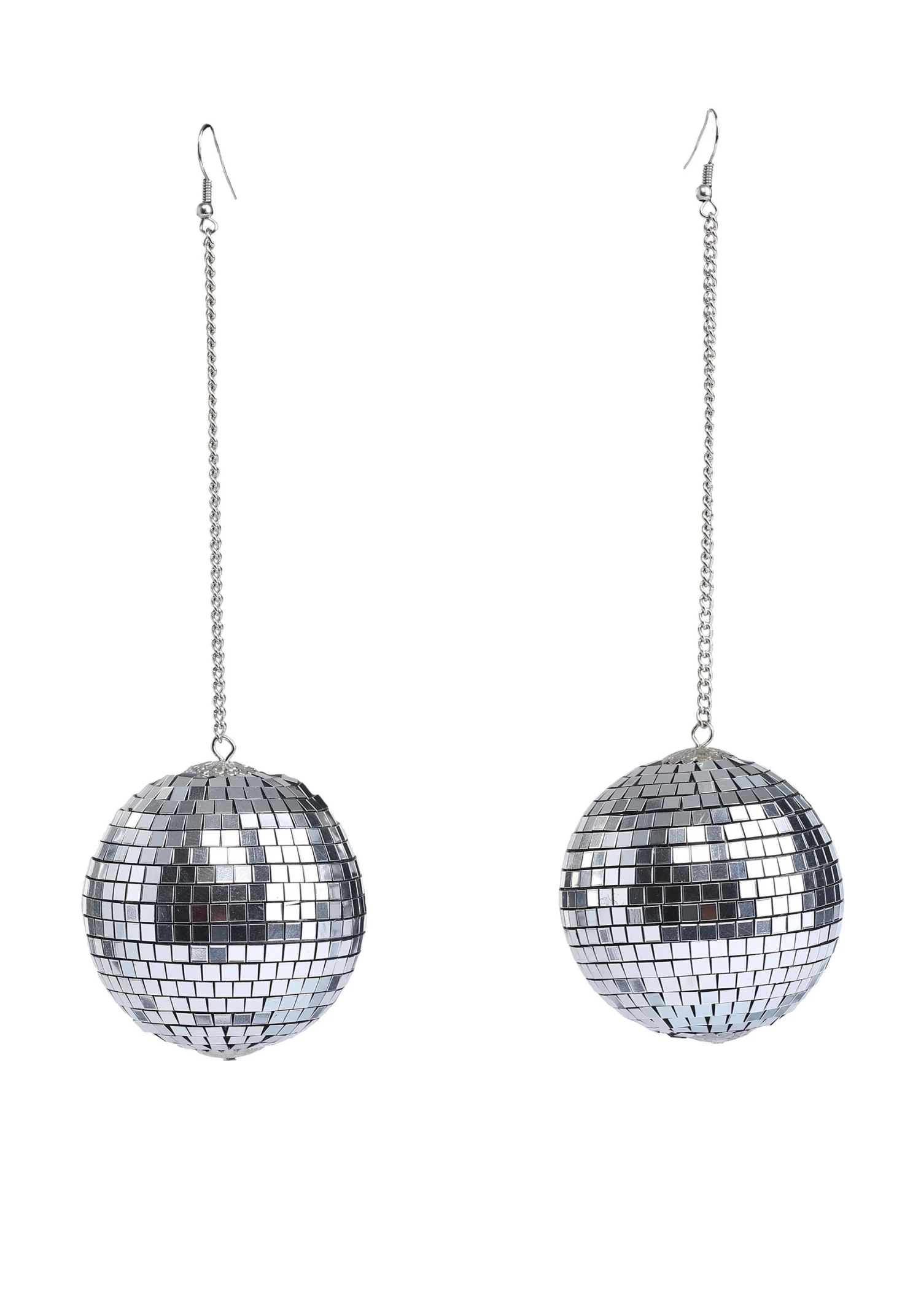 - 2″ disco balls hang from 3.5″ chains w/ French-style earring hooks