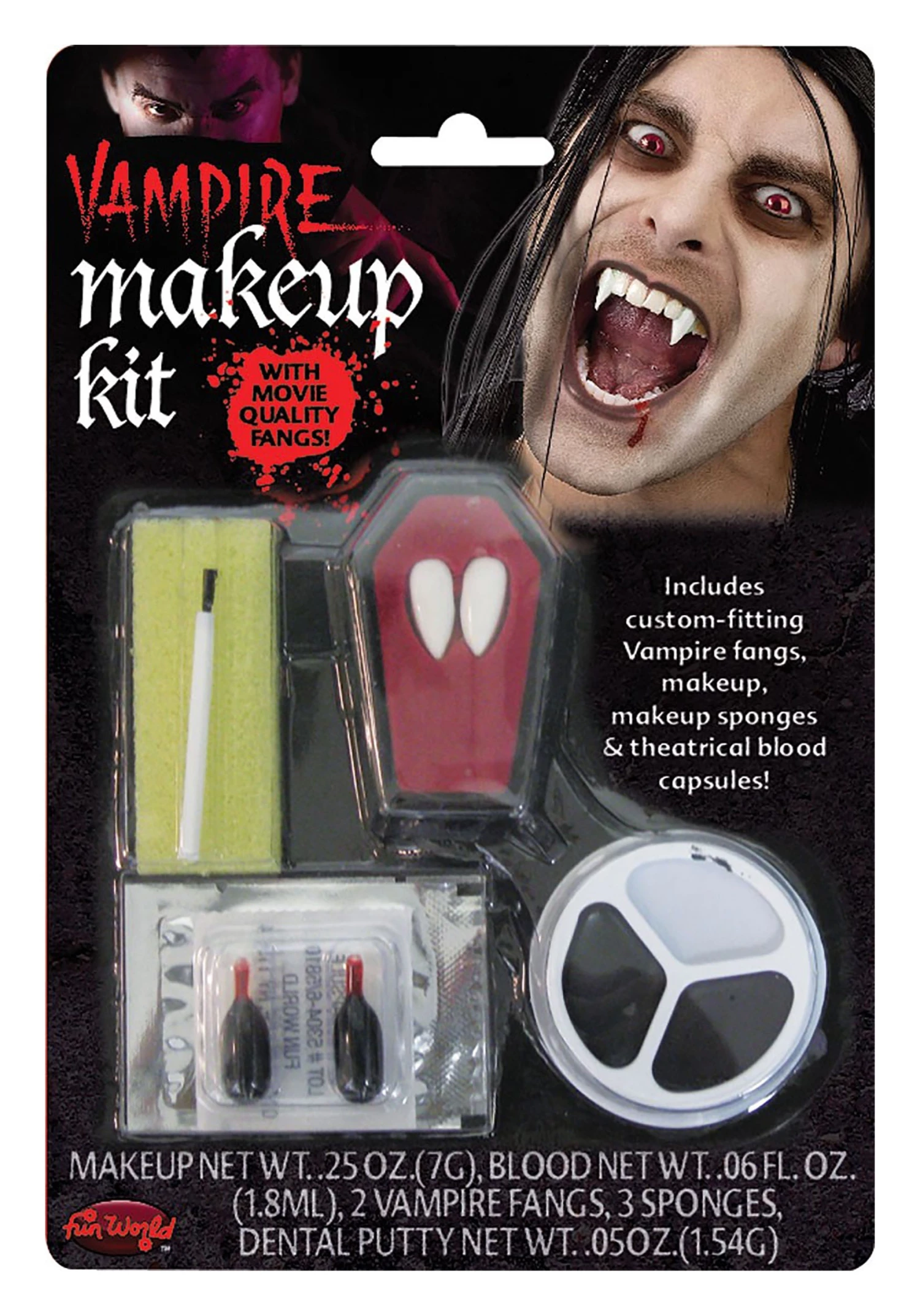 Most importantly, this kit has white fangs that custom fit your canines. The sponge applicator can apply the white and creme makeup. And, of course, the whole ensemble isn’t complete without the red blood capsules. You’ll also get instructions so you’ll know exactly how to transform when the time is ready.