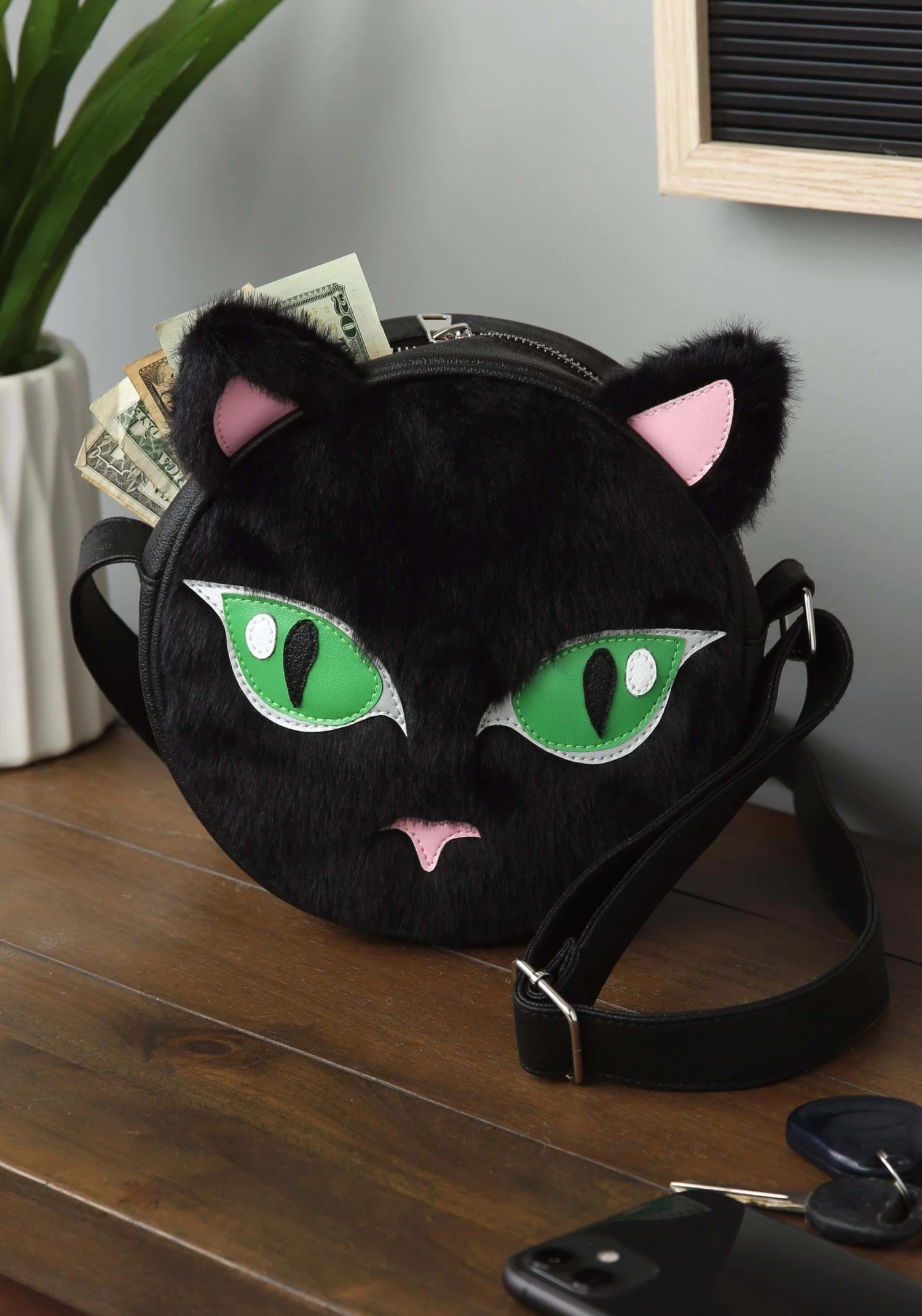- Faux fur purse front and ears