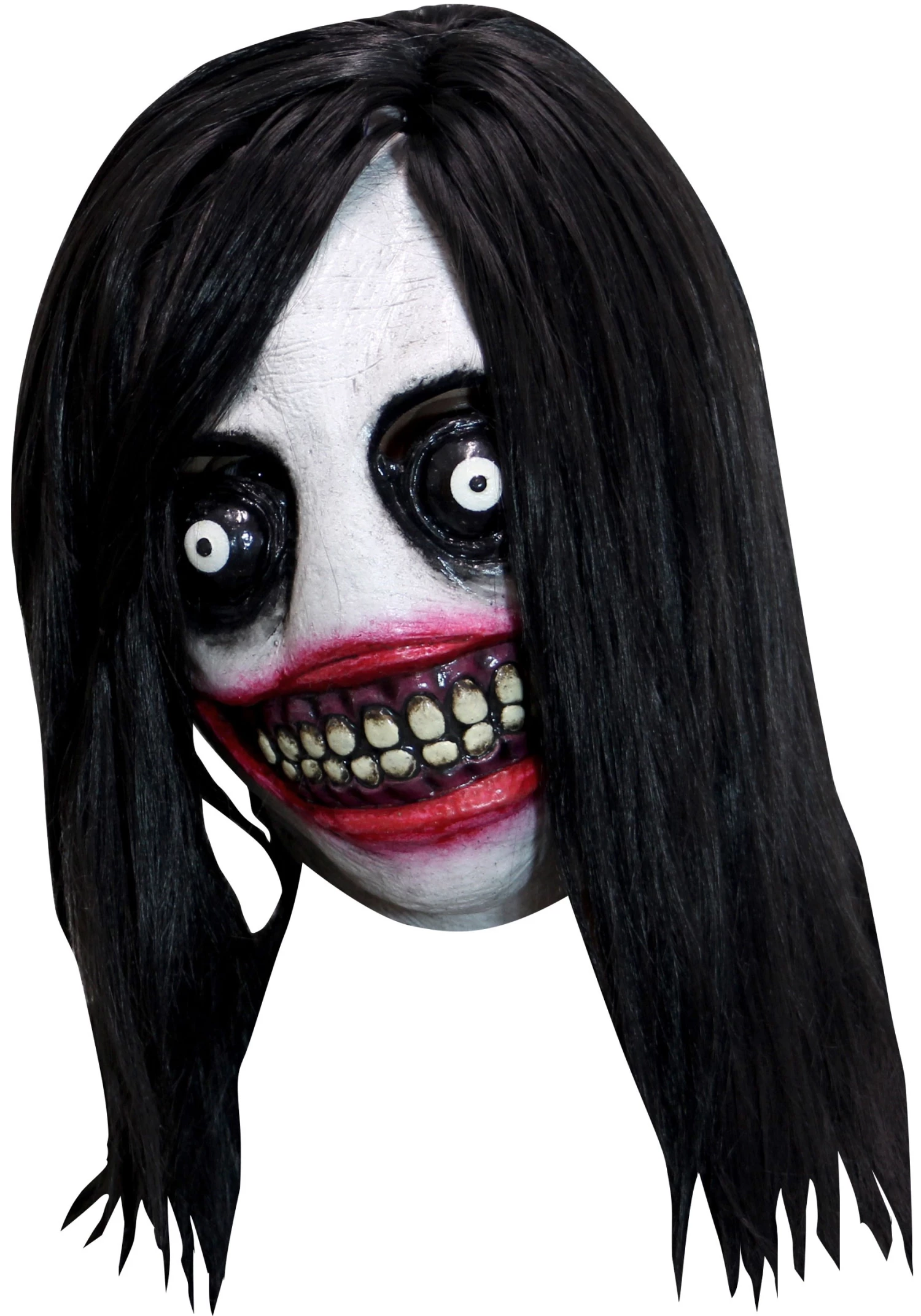 His bleached face, dark eyes, and red mouth will after you simply scroll through a message board and encounter his greasy hair framed face. The last thing people will expect is to see him outside Reddit and in the real world. Wear the mask out to a party, wear it while Snapchatting your friends. We can’t even handle the creepiness and we work at a Halloween costume company.