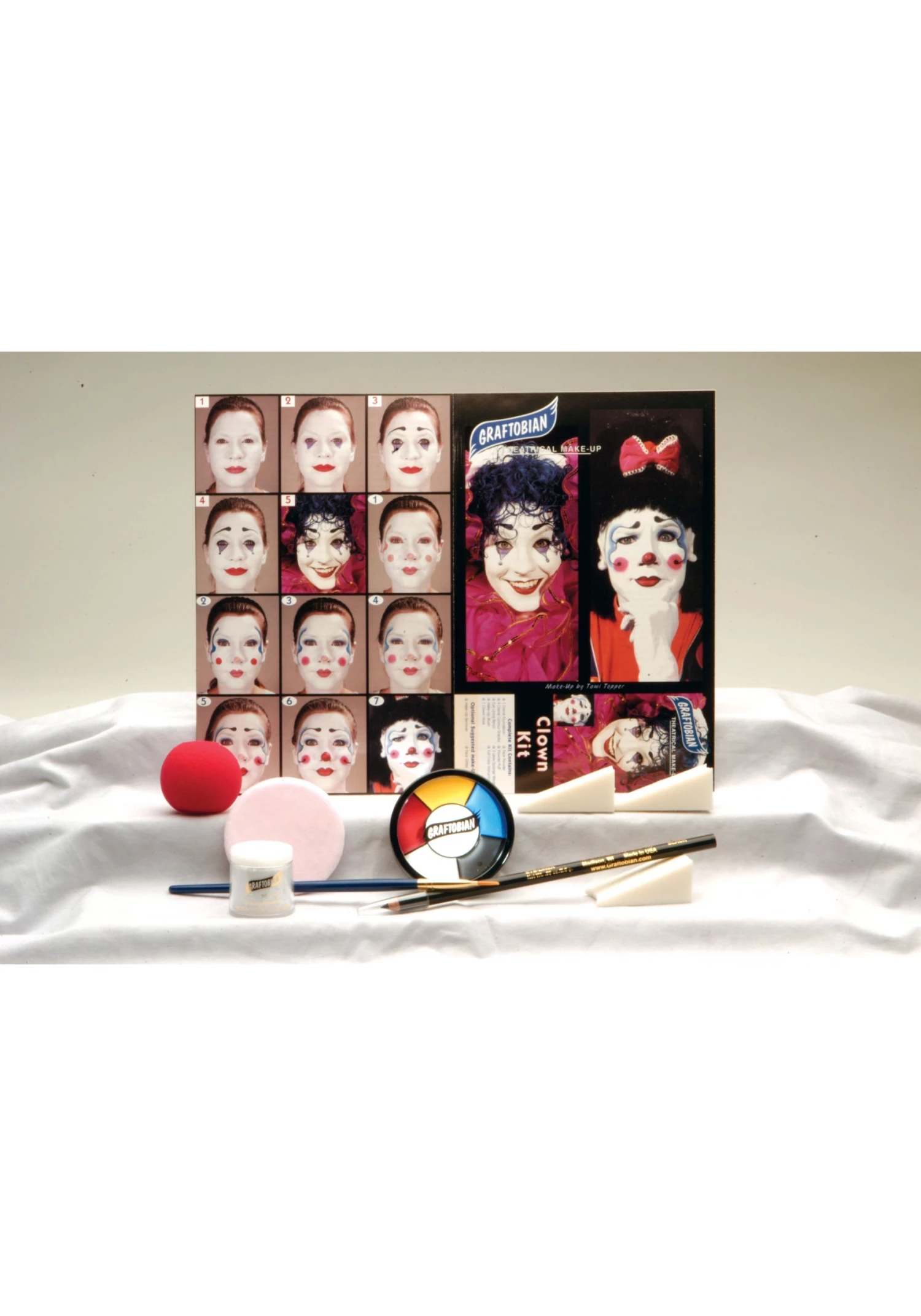 This deluxe clown makeup kit is a professional makeup kit that includes everything you need to create the perfect clown look. It comes with a crème foundation, along with 4 vibrant crème contour shades, including blue, red, orange and black. It also comes with an eye lining pencil, a make-up brush and face powder. A powder puff and latex sponges are also included for your convenience. Finally, a clown now and a set of instructions are included to help kick start your clown look.