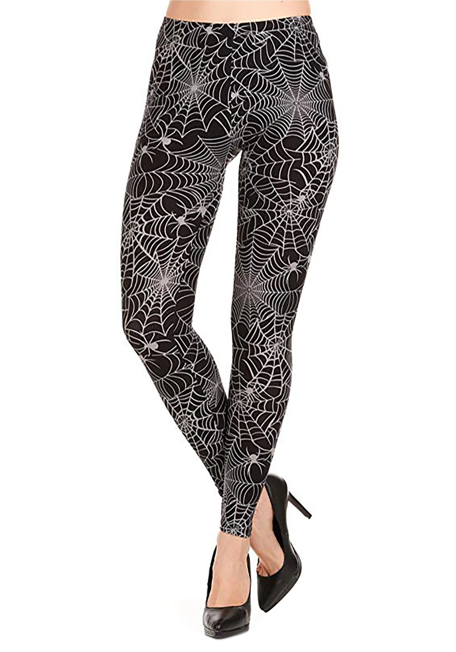 These lovely black leggings are printed with silvery spider webs. Spiders are dotted throughout subtly because while we are celebrating the wicked webs they weave, we can’t forget about the genius arachnids themselves!