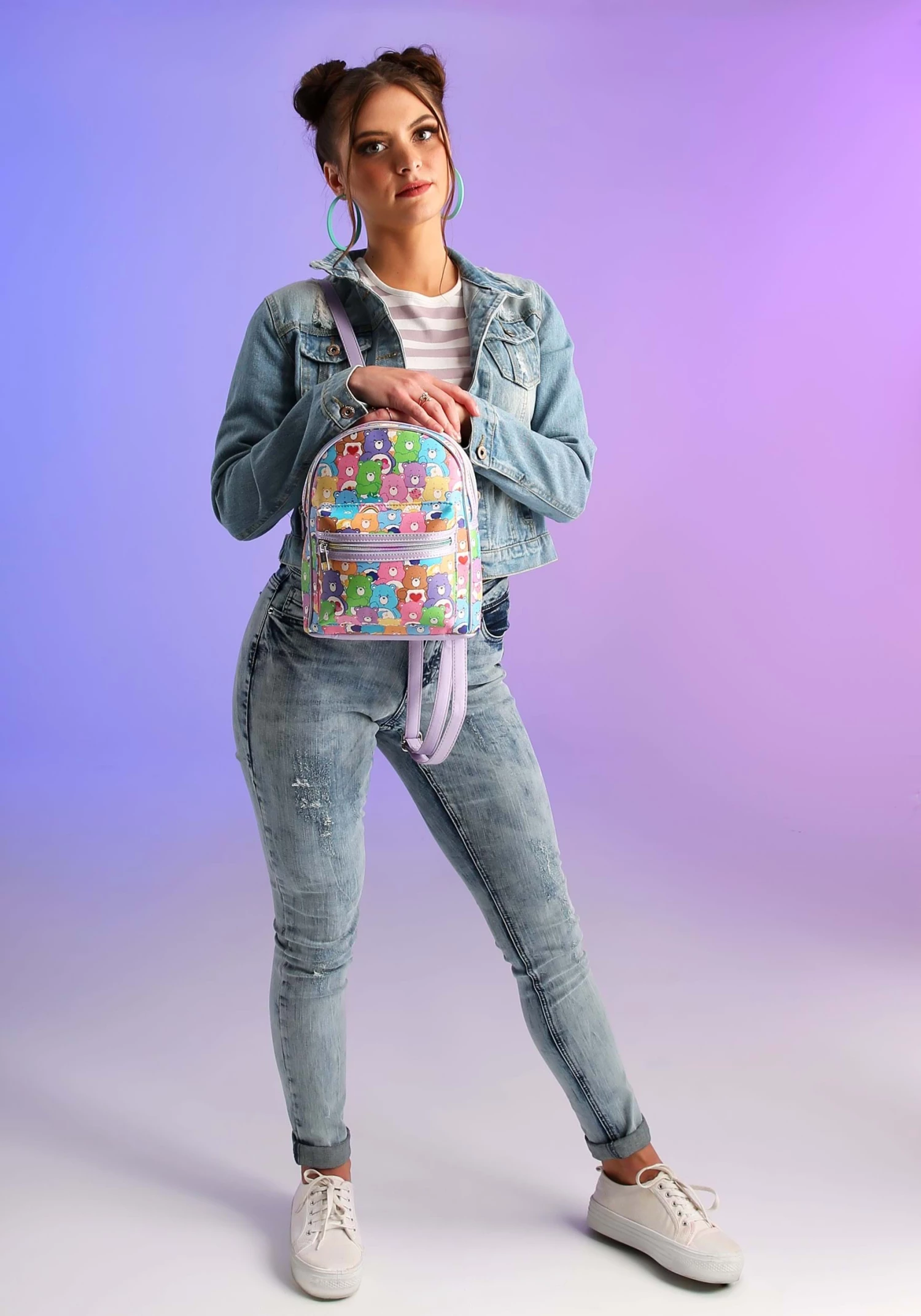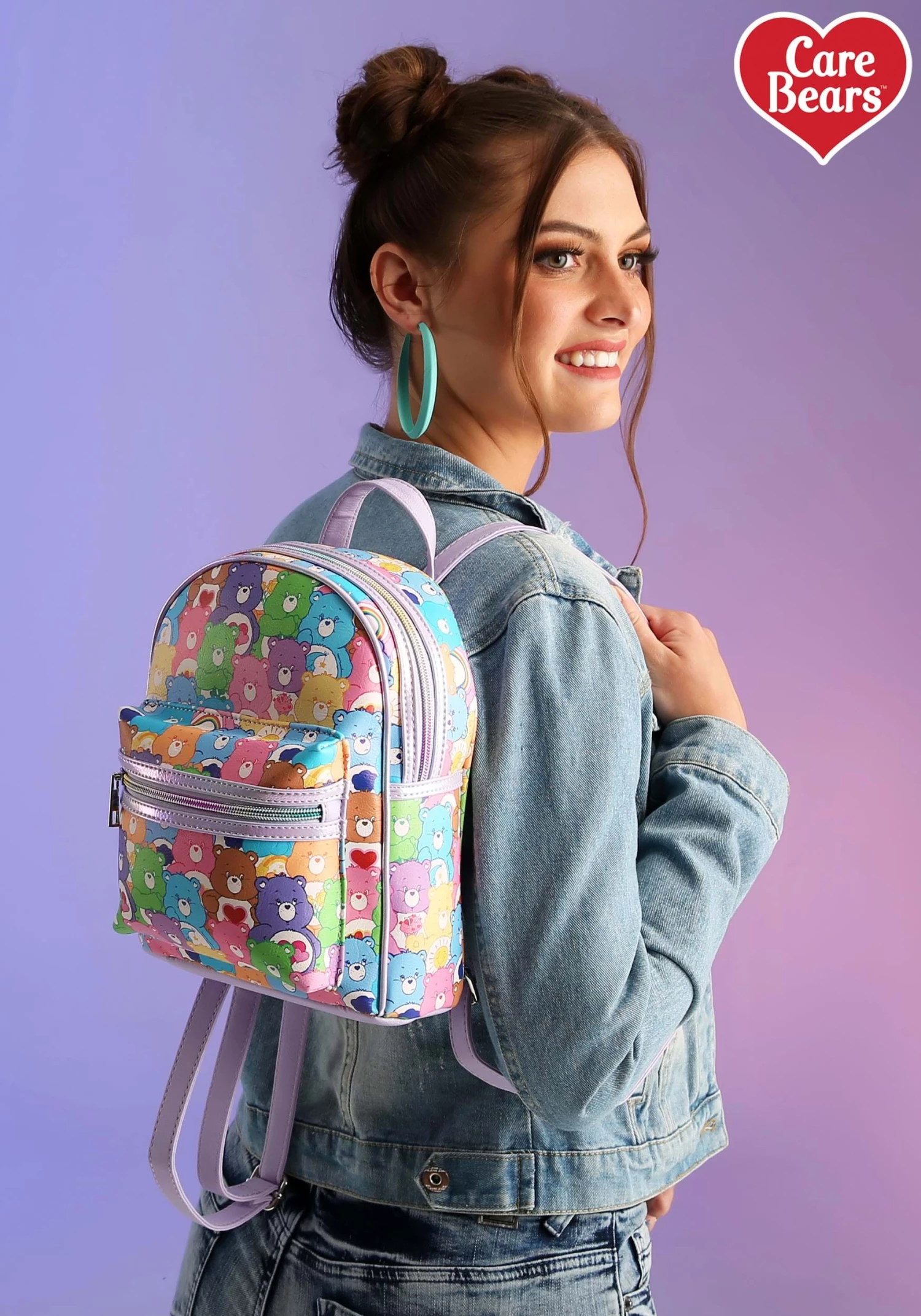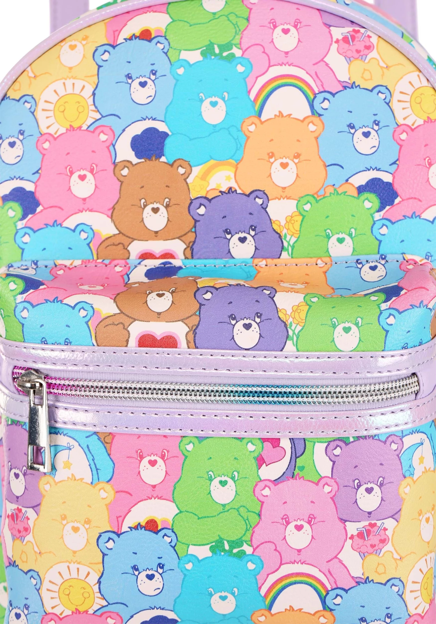 The Care Bears have a secret weapon! When the villains of the world try to spread their evil ways across the land, the bears band together and perform the Care Bear Stare. Their belly badges light up and they stave off the latest evil scheme! Now, the Care Bears are banding together once again… on a backpack! This Care Bears All Over Print Mini Backpack combines the powers of the Care Bears into an amazing accessory that you can bring on any adventure.