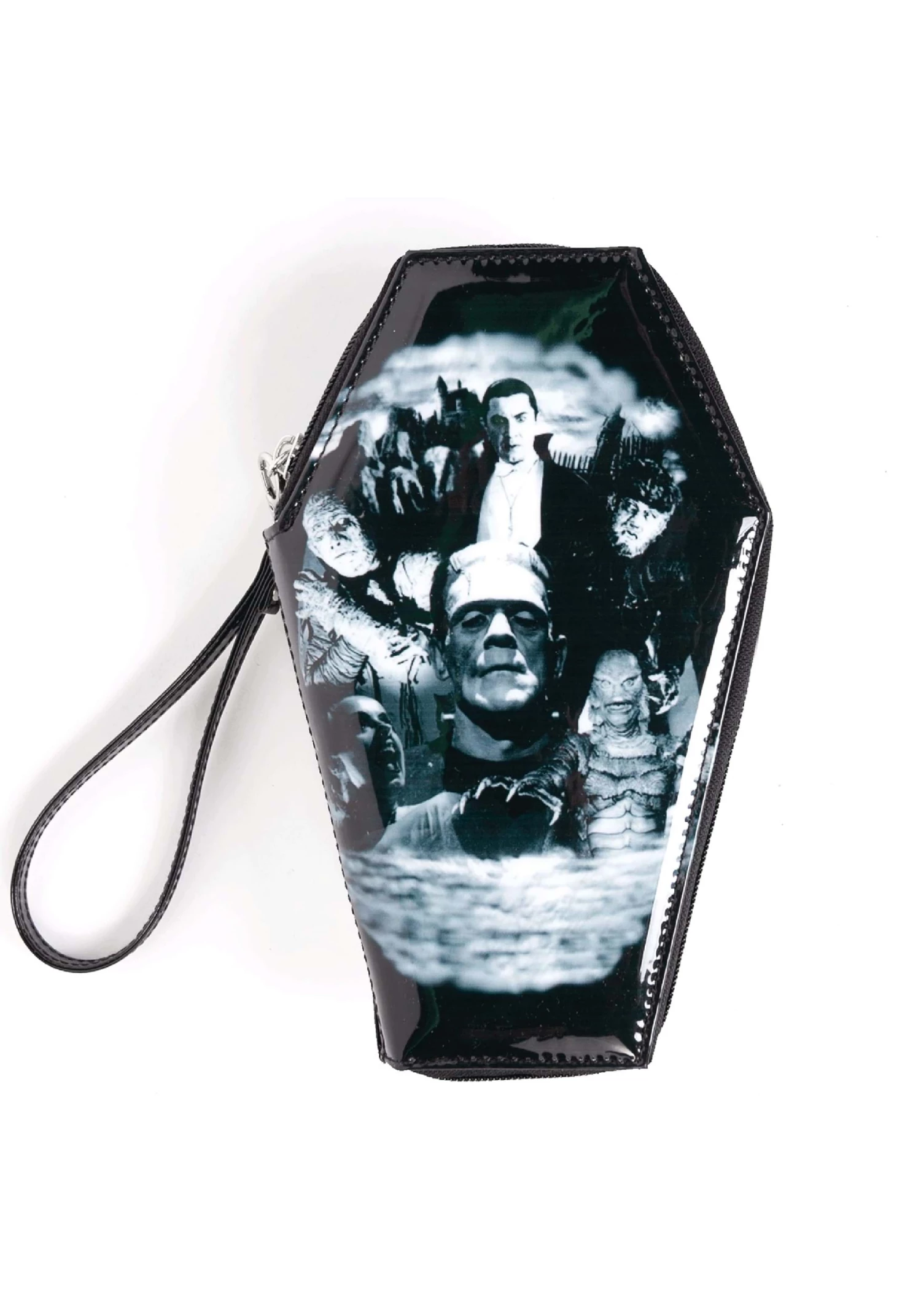 This is a Monster Collage Patent Coffin Wallet.
