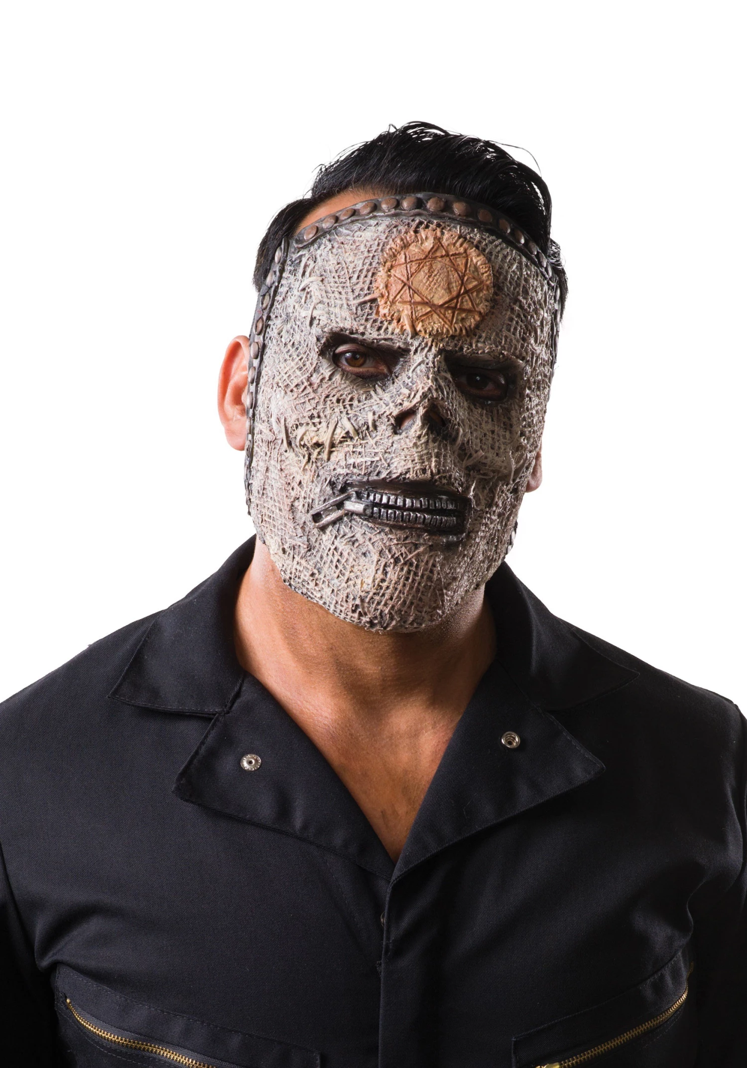 When V-man joined the band a few years ago, he adopted his own signature persona, a cut up bandaged monster mask that looked distinctive while still fitting in with the rest of the bandās masksā theme. If you want the best way to identify fellow heavy metal fans in public, just slip this sick puppy on and go about your regular business. Anyone who doesnāt recognize you isnāt worth your time anyway!