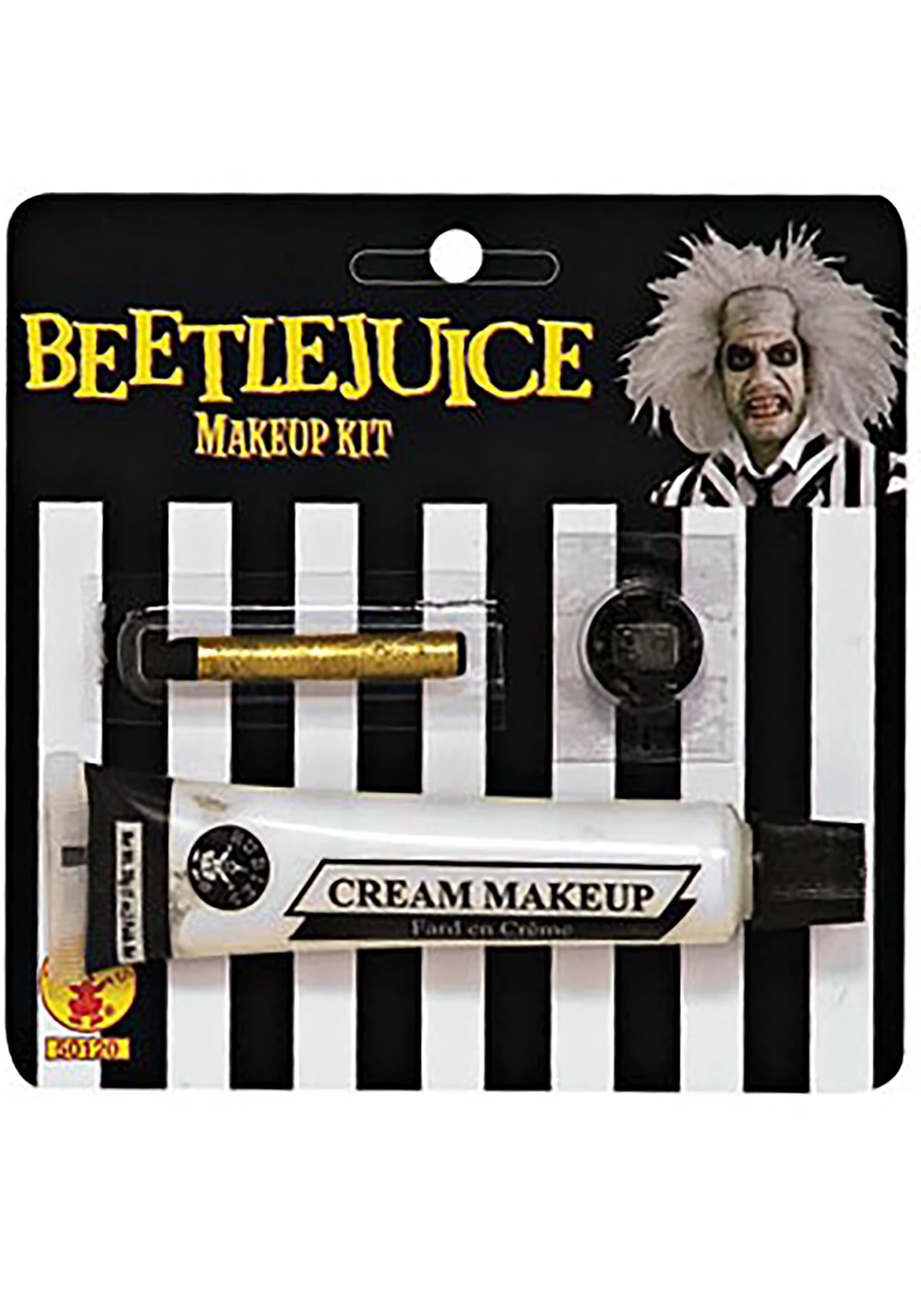 It’s showtime and you’ve got a spotlight right on you! The best way to make sure that you get hired for a little exercising exorcisms is to be sure that you have the right look. You’ve got the clothes. You’ve got the amazing superpowers. Now you just need to make sure that you’ve got the right nuanced look. And this Beetlejuice Makeup is the surefire kit to make that happen. The officially licensed kit comes straight out of the Handbook for the Recently Deceased and includes the dead-flesh white base, a black stick to apply the dark spots around your eyes, and the tooth wax to give you the perfect shade of insect-slime that will prove you are the Ghost with the Most!