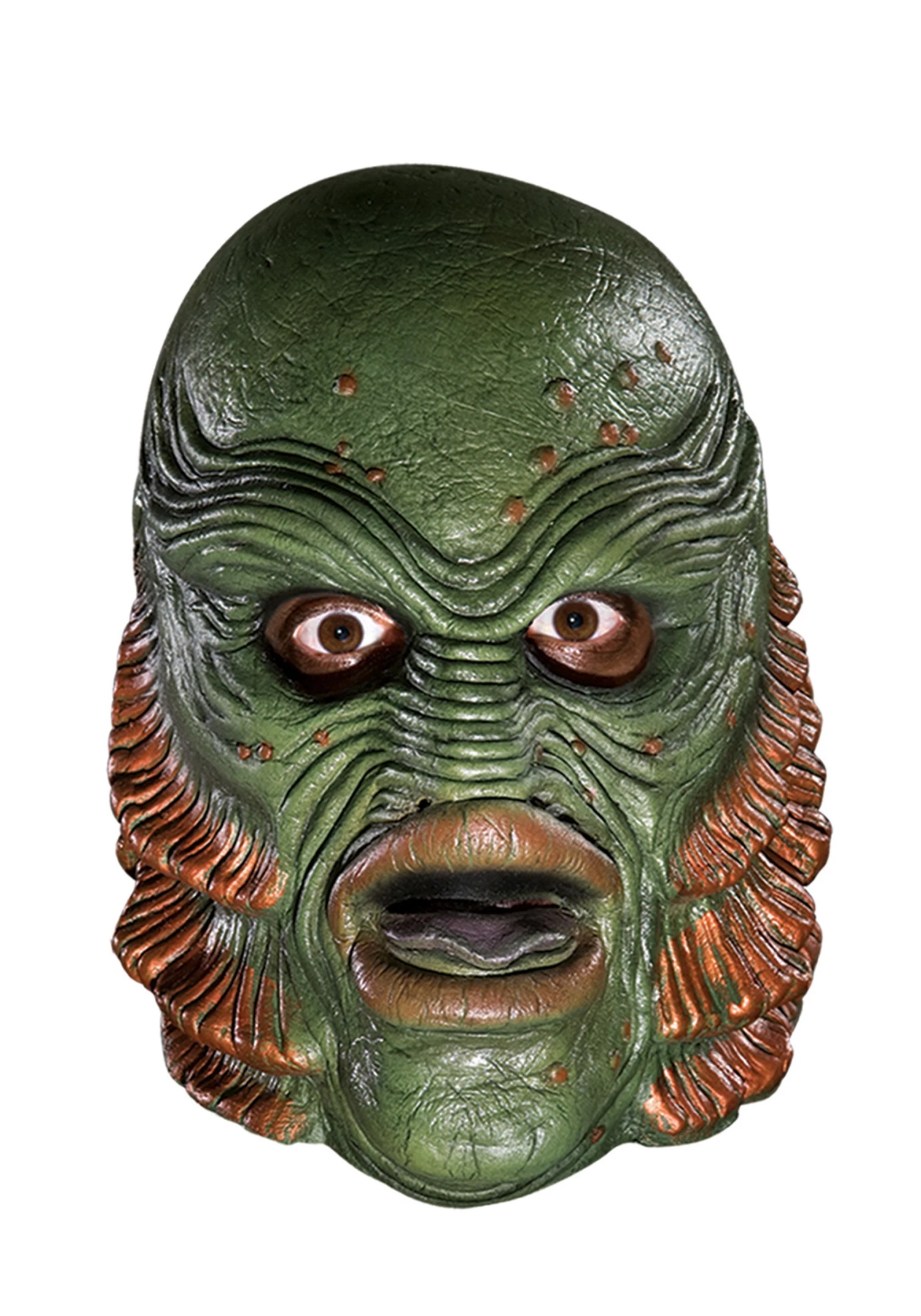 Now, you might not be able to be part of the silver screen golden era but you can become the Gill-man with this unforgettable mask. You are sure to love all of the small details that will make you look right at home on those classic movie posters. The mask covers the entire head and has fish like lips, a strange slitted nose, and eye holes that are easy to see through. You’ll be a hit with classic monster lovers. Just try not abduct any beautiful party-goers!