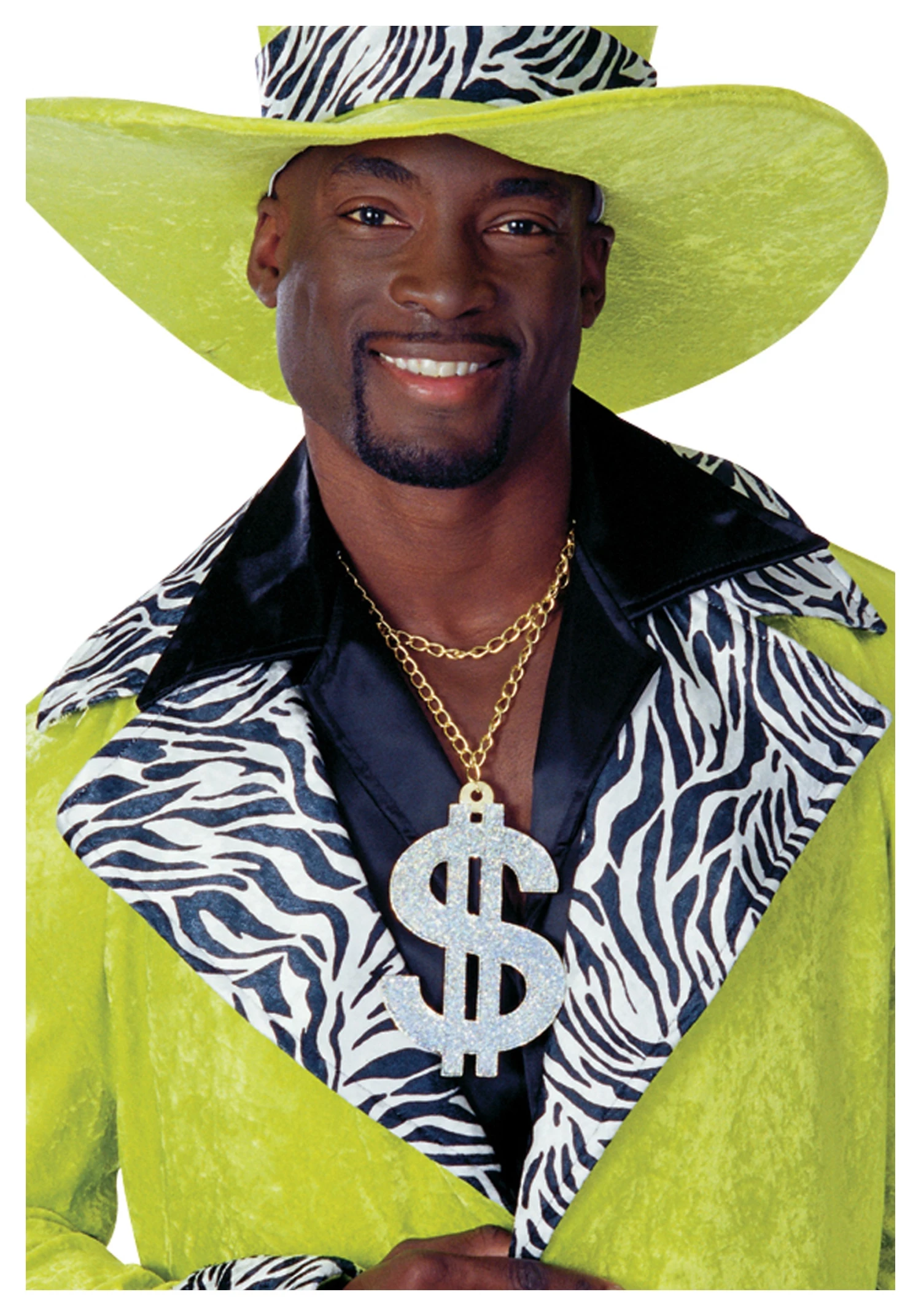 There are a few staple items that are Must-Haves on the list of a man of the masses who can provide. Animal print is up there. We recommend leopard or zebra. Fur or leather is next, ideally in colors that defy our natural sensibilities. Again, we recommend glowing purple or a virtually radioactive green. But, the most crucial of all are the accessories. And it always begins with what you project most prominently on your chest. For that, there can only be this sparkling silver Dollar Sign Necklace on a gold chain. Be the king… the king of the dolla dolla bills!