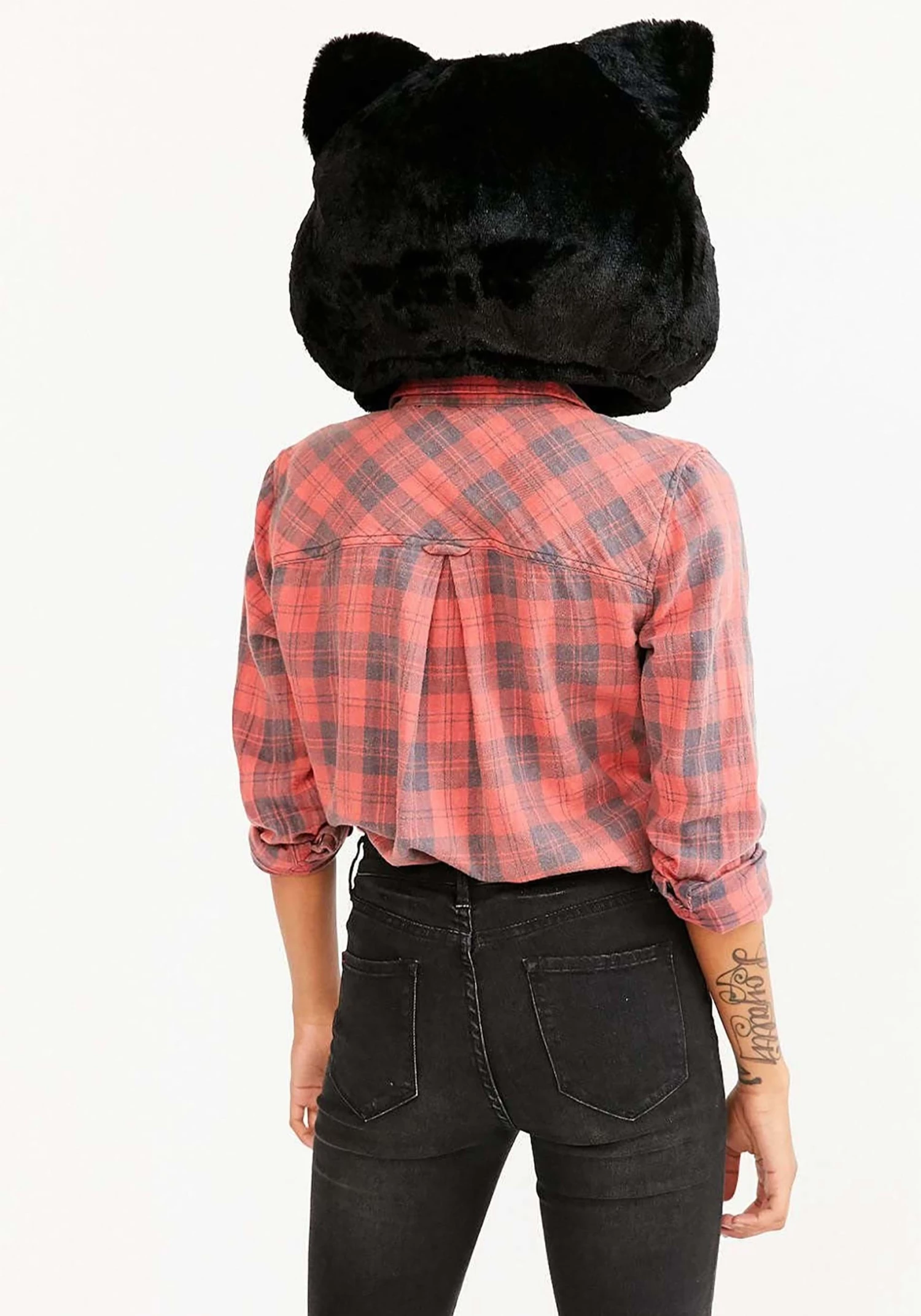 - Soft, furry outer shell,has appliqued & embroidered facial features on front