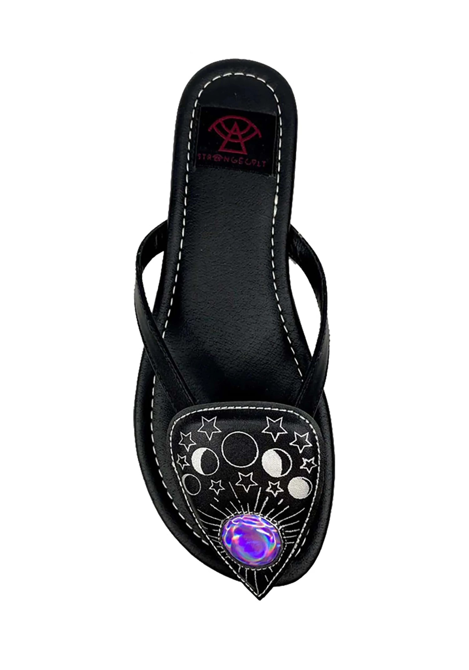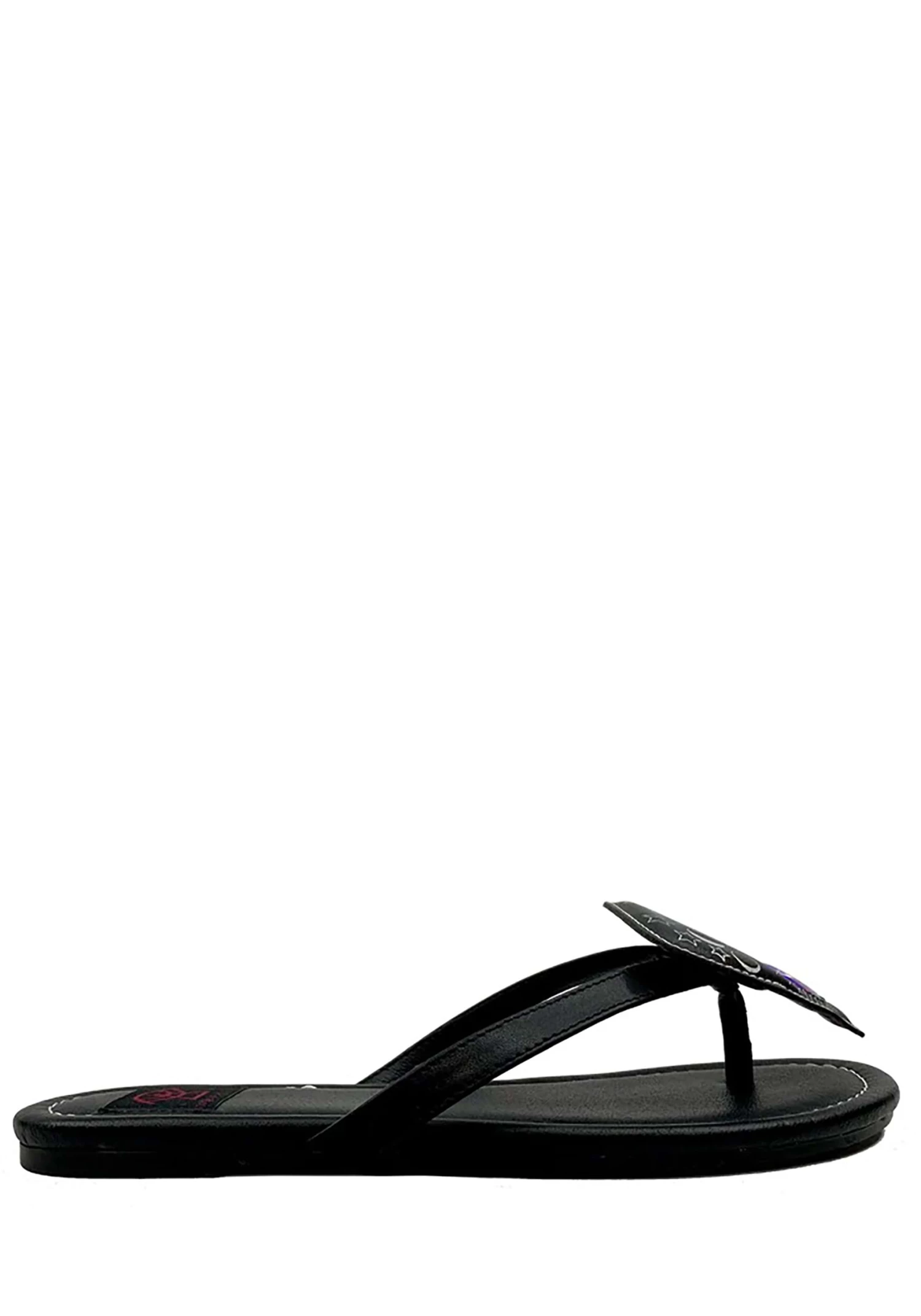 - Graphic piece is sewn on the front of the sandal